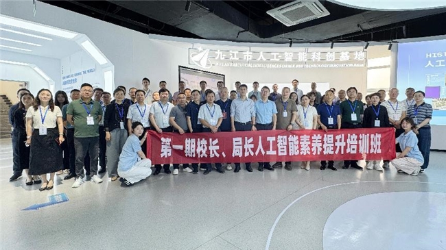2025年5月25日,九江市教育技术和装备发展中心主办的"第一期校长、局长人工智能素养提升培训班"在九江市人工智能科创基地举办。九江市教育局党委委员、总督学刘志杰,江西师范大学数字产业学院院长江爱文,九江市教育技术与装备发展中心主任童晖,副主任宗德平等领导出席开班仪式,各县(市、区)教育局分管局长、相关中小学校校长或分管校长共46名参训。