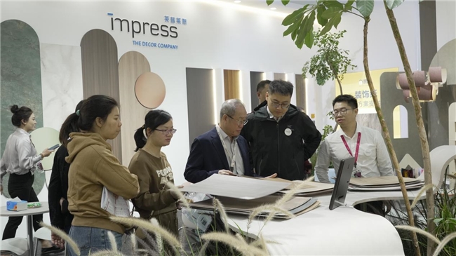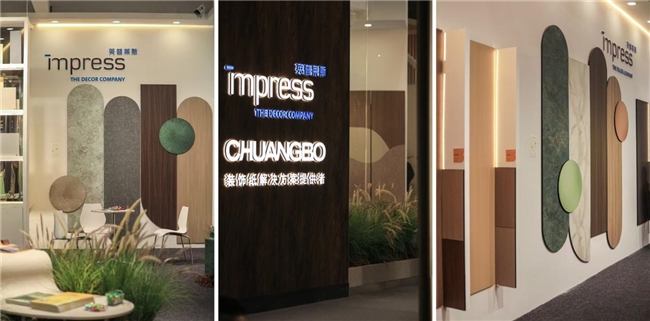 展会现场,英普莱斯打造了一个沉浸式展陈空间,将现代简约、轻奢雅致、自然生态等多元设计风格融入产品展示中。从细腻逼真的木纹肌理到充满未来感的金属质感,从经典单色到创意混搭花色,每一款产品都精准捕捉国际设计潮流,同时兼顾环保性能与工艺适配性。现场观众纷纷驻足体验,其中“I’m Impress饰面精板”系列凭借高精度印刷工艺与抗刮耐磨性能,多家定制家居企业当场表达合作意向。