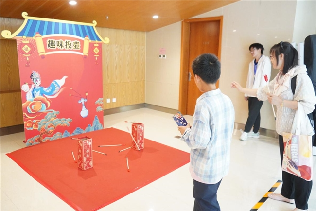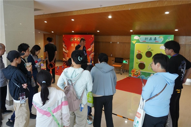 在表演区,舞狮腾跃翻飞拉开序幕,京剧变脸瞬息万变令人拍案叫绝,马头琴悠扬旋律诉说着草原情怀,古琴与葫芦丝合奏则勾勒出山水诗意……演者演得真切,观者看的入迷,在动与静、急与缓、刚与柔中,中华文化已悄然滋润心田。在互动区,大家跃跃欲试,投壶竞技、套圈挑战、击射五毒……体验着传统文化活动带来的快乐。