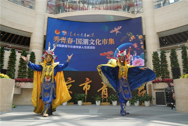 在中国旅游日悄然而过,端午节、中国文化和自然遗产日即将接踵而来之际,北京的文化味道愈发浓烈而醇厚。5月25日,为深入学习发挥北京全国文化中心的资源优势,打造青少年喜爱的非遗国潮文化消费新场景,引领青少年坚定文化自信,由共青团北京市委员会、共青团天津市委员会、共青团河北省委员会、共青团内蒙古自治区委员会、北京师范大学非物质文化遗产研究与发展中心指导,北京青少年服务中心、天津市青年发展促进中心(天津青年宫)、共青团张家口市委员会、内蒙古民间文艺家协会共同组织“走进非遗看北京”秀青春·国潮文化市集在北京市青年宫举办,在京参加交流活动的京津冀蒙青年非遗传承人、青年艺术家及北京青少年等近千人参加。