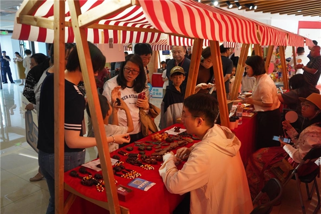 活动围绕打造青少年喜爱的文化市集,聚焦让青少年“走进非遗世界 爱上国潮文化”主题,设置了非遗国潮文化展示区、互动区、表演区,从触觉、视觉、听觉等多个维度,带领青少年感受中国非遗与国潮文化魅力,同时,编写并发放《中国非遗 与世界同行》宣传册,推介中国入选联合国科教文组织的44项非遗成果。
