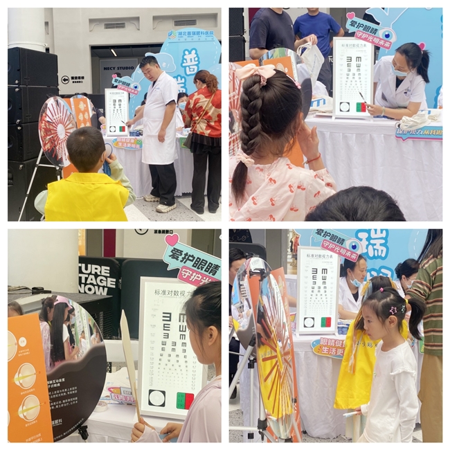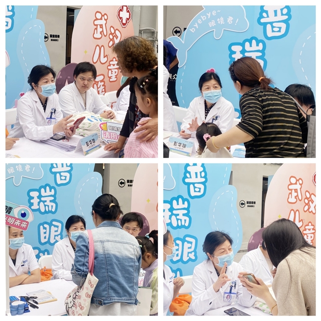 湖北普瑞眼科医院派出由彭华琮院长领衔的4名医疗团队,为参加活动的市民朋友们开展公益眼健康检查。活动现场,设置“视力筛查区、科普互动区、咨询诊疗区”三大功能区,通过裂隙灯检查、眼球模型互动讲解、以及“照镜子识眼病”等创意科普艺术道具等友好化设计,完成裸眼视力检测近100人次、屈光筛查80人次,筛查出潜在近视倾向儿童30余人、斜弱视疑似病例3余例。湖北普瑞眼科转专家团为家长现场解读检查结果,为其子女建立《儿童屈光发育档案》。