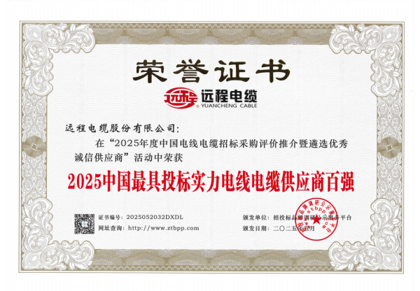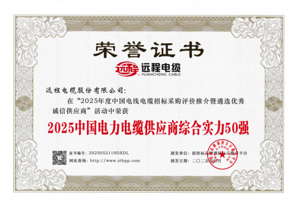 近日,由招投标品牌调研公示服务平台主办的"2025年度中国电线电缆招标采购评价推介活动"中,远程电缆股份有限公司(股票代码:002692)从众多参评企业中脱颖而出,荣膺"2025中国国有电线电缆企业10强"、"2025中国电力电缆供应商综合实力50强"、"2025中国最具投标实力电线电缆供应商百强"称号。这一荣誉不仅是对企业综合实力的认可,更是对其作为国有控股上市公司在技术创新、产业升级等方面示范作用的充分肯定。