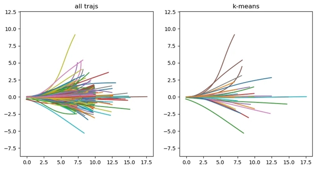例如,在现实场景中无人驾驶车上路沿、闯红灯、发生碰撞等高风险场景很少出现,场景挖掘的结果难以覆盖模型训练和测试的需求。先知大模型首先对实际的较长的规划轨迹进行聚类,并投影,合成各类反事实决策场景。