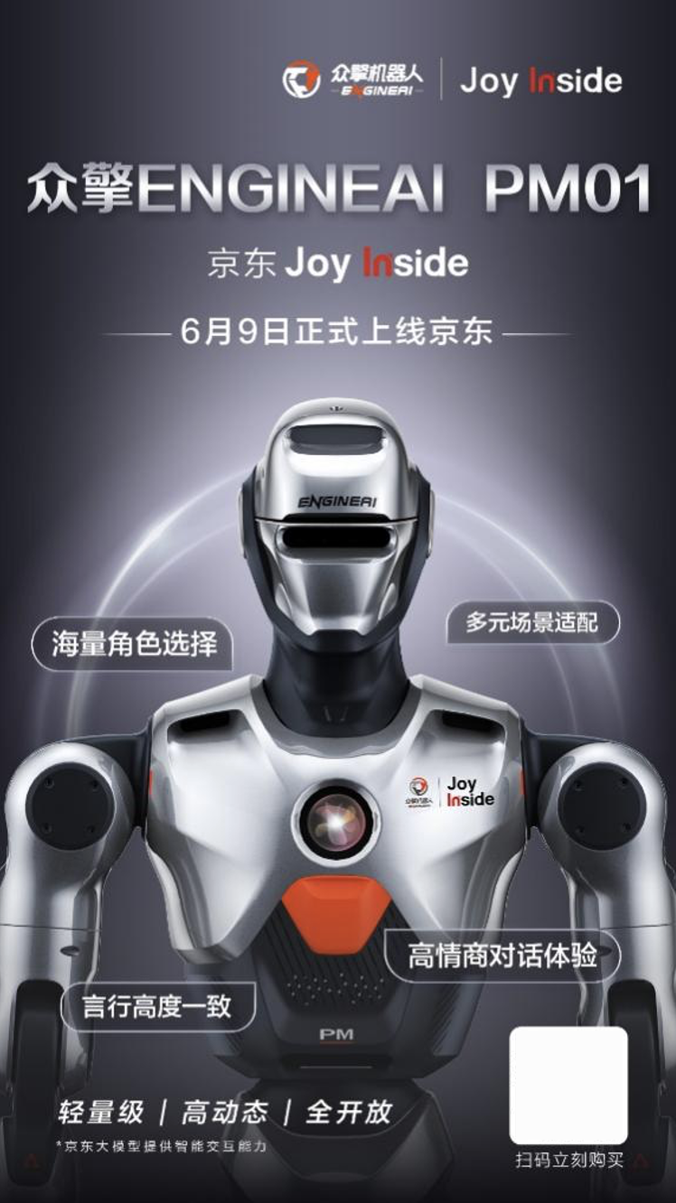 近日,在京东618夏日歌会上与张艺兴同舞的人形机器人走红网络,这款产品就是来自众擎的PM01机器人。该款机器人凭借高精度传感器和智能控制算法,实现了动态平衡和步态自适应调整,是全球首例能够完成前空翻的人形机器人,也是全球首创的自然步态行走机器人。6月9日,京东携手众擎机器人科技,带来众擎PM01京东Joy Inside机器人,售价188000元。值得一提的是,该款机器人接入了京东Joy Inside,拥有了更流畅的对话能力和高度协调的言行一致,能为用户提供更舒适的人机交互体验。