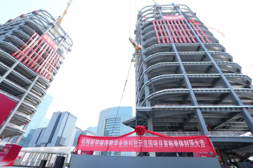 (丽泽数字金融科技示范园首期写字楼封顶现场)