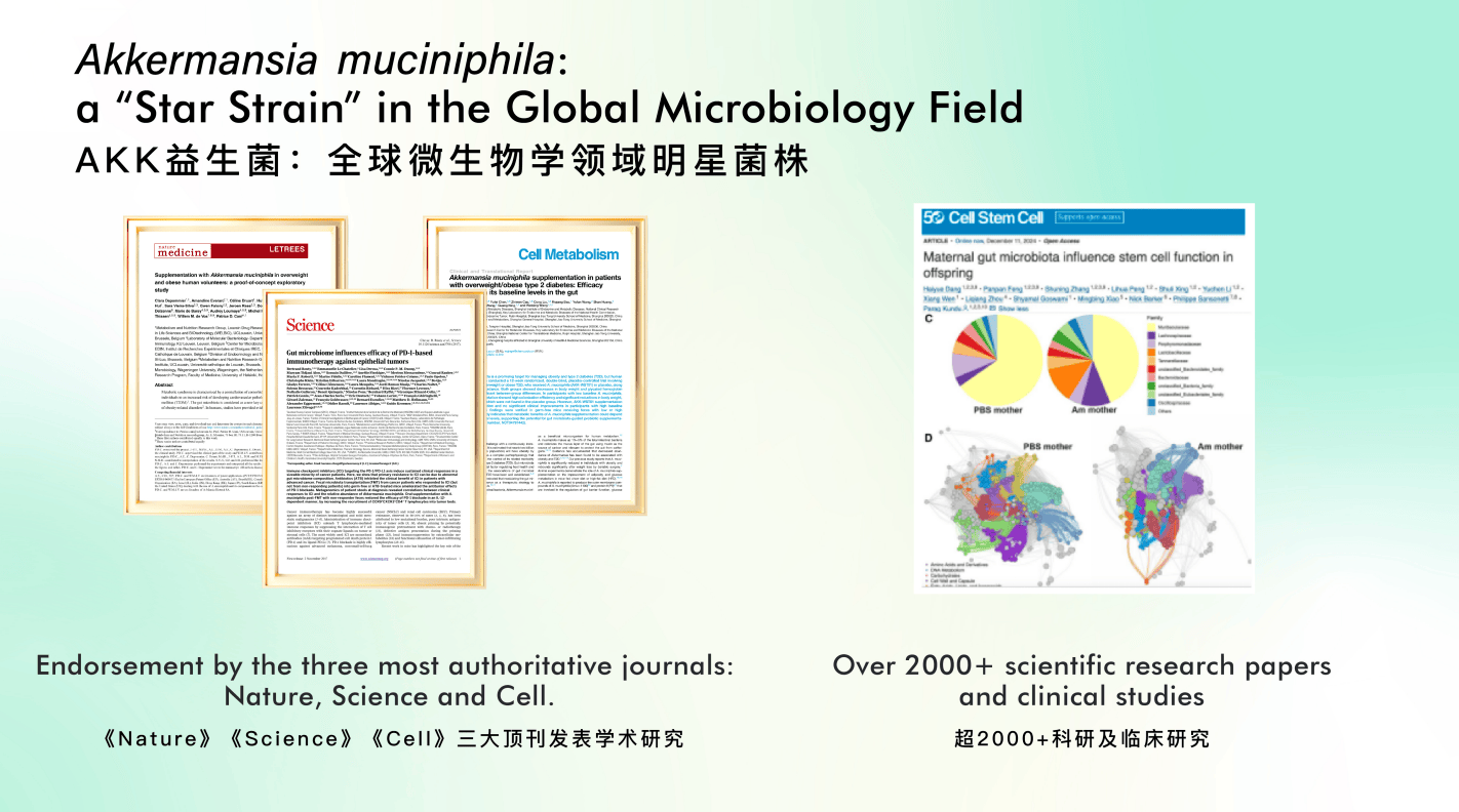 超2000+科研及临床研究表明,AKK菌与人体健康息息相关。在调节肠道免疫功能方面,AKK菌能刺激肠道免疫系统的发育和成熟,降低肠道炎症的发生风险;在代谢健康方面,它与肥胖、糖尿病等代谢性疾病呈负相关,增加AKK菌数量有助于改善代谢状况,调节血糖血脂水平。与此同时,《Nature》《Science》《Cell》国际三大顶刊的背书,也为Akk菌在肠道健康领域的卓越功效提供了坚实支撑。