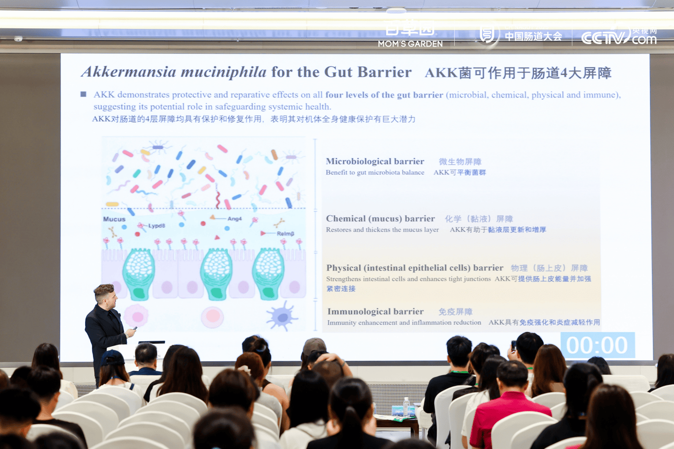 在发布会的前沿研究分享环节,来自国内外的权威专家及特邀嘉宾就天然益生菌与人体肠道健康的紧密联系展开了深入探讨,并特别指出AKK菌株作为备受全球微生态研究领域关注的“新一代益生菌”,在调节代谢、改善炎症、辅助肠道健康等方面的重要作用。