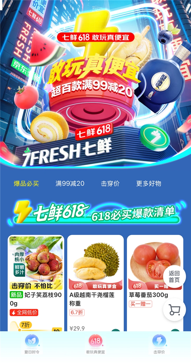 目前京东七鲜 618 仍在进行中,消费者通过京东APP七鲜入口、七鲜APP或微信小程序便捷下单,即可享受“又好又快又便宜”的购物体验。此外,新用户可领77元新人礼包,京东PLUS会员下单免运费,尽享超值权益。