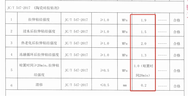 1.高强度粘结:根据第三方检测报告,该产品在浸水、热老化、冻融循环等极端条件下,拉伸粘结强度均稳定≥1.0MPa,远超行业平均水平,即使低吸水率玻化砖也能牢固粘贴,有效降低空鼓率;