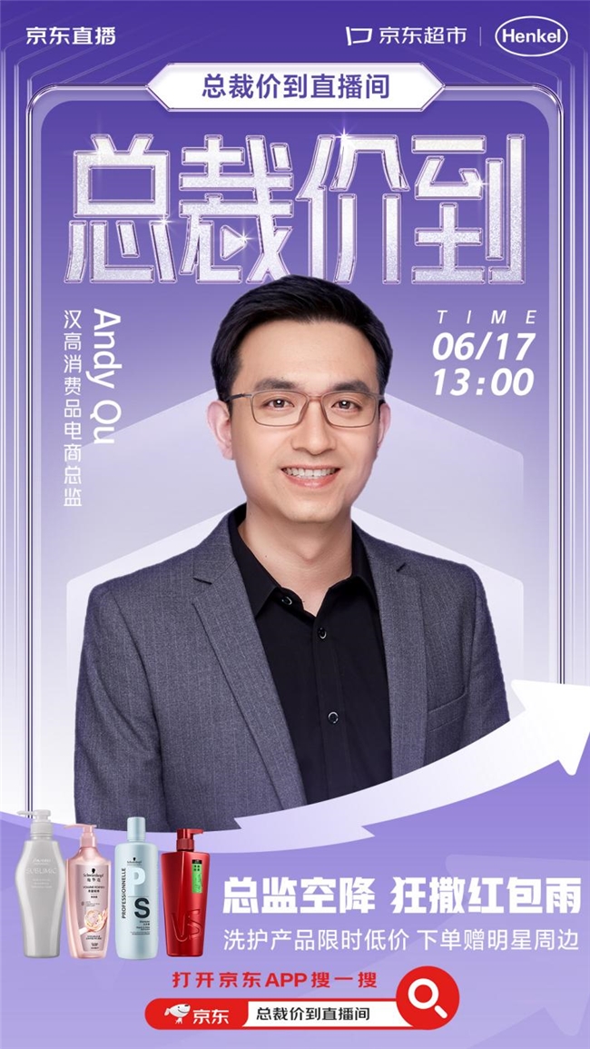 夏季气温升高,头皮出油多易敏感,汉高集团消费品电商总监 Andy Qu将从产品成分到科技,现场展示旗下施华蔻、施华蔻专业线、沙宣、资生堂专业线四大品牌的“硬核”实力,更带来单品直降近30元、抽送产品礼盒等优惠,与大家亲密互动。