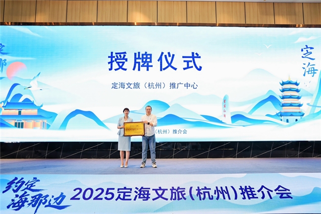 活动现场,定海区文广旅体局授予浙江省旅游投资集团大营销中心“定海文旅(杭州)推广中心”称号,双方将充分发挥各自资源优势,在旅游资源整合、精品线路打造、品牌营销推广等领域深化合作,携手开拓市场。
