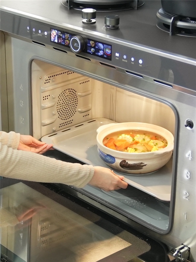 现如今,传统厨房设备普遍存在一类问题——功能单一。炒、蒸、烤需多台厨房电器协同完成,不仅占用空间,还会导致效率低下,令人疲惫不堪。火星人Q60蒸烤一体集成灶集成80L超大容量下柜,将灶具、油烟机、蒸箱、烤箱、空气炸锅等设备的核心功能融为一体,支持上炖炒、下蒸烤同步操作,一次性能完成红烧肉、清蒸鲈鱼、烤蛋挞等多道菜品,满足快节奏家庭的多样化需求。