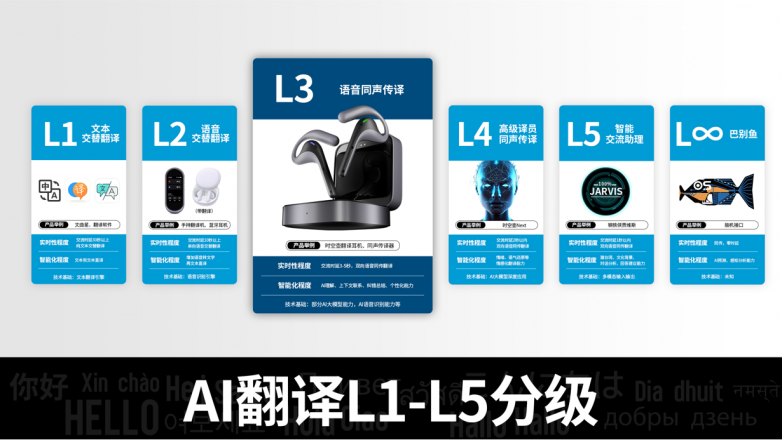 在 AI 同传技术的 L1-L5 分级体系里,L1 作为最基础层级,仅能实现文本到文本的翻译,交流时延常常长达数十秒以上,极大限制了沟通效率。L2 则进阶到能够进行语音和文本、语音和语音之间的单向同传或交替翻译,但在双向交流时,数十秒的翻译延迟,让对话难以流畅进行。目前市面上多数 AI 翻译耳机仍停留在这一层级。