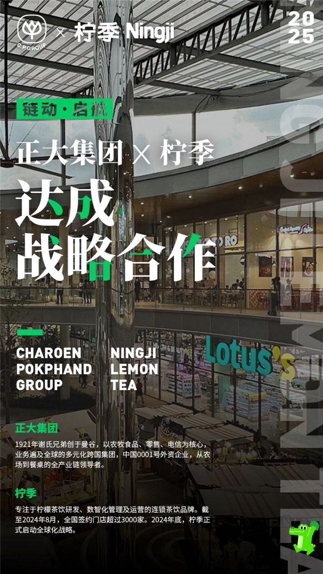 近日,柠季宣布与亚洲知名跨国企业泰国正大集团(以下简称CP集团)达成战略合作。