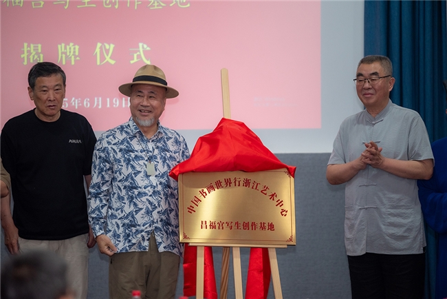 揭牌仪式结束后,出席活动的嘉宾们一同参观了昌福宫,并就书画艺术的发展进行了深入交流。未来,中国书画世界行浙江艺术中心昌福宫写生创作基地将定期组织各类写生、创作和交流活动,吸引更多的书画爱好者和艺术家参与其中。同时,基地也将加强与各地艺术机构的合作,共同推动书画艺术的繁荣发展,为弘扬中华优秀传统文化贡献力量。(高仁)