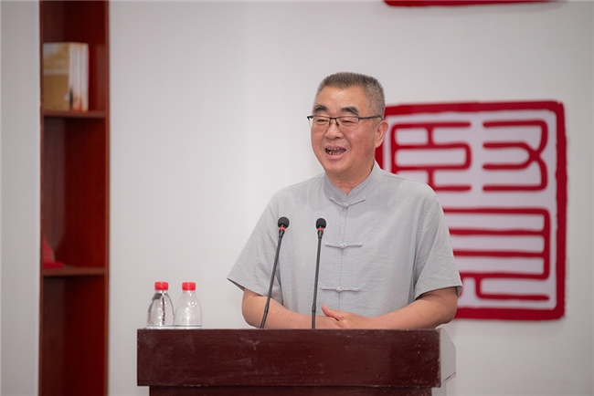 最后,昌福宫负责人陆澹清致感谢辞。他表示,昌福宫承载着治水安民的历史记忆,而德清作为抗战时期浙北重要战场,曾涌现出无数可歌可泣的英雄事迹。今日我们以书画文化为纽带,不断提高德清昌福宫的文化品位,将艺术创作熔铸于祠山千年治水精神保家卫国的革命情怀。未来,愿浙江艺术中心以书画作舟,承载着历史记忆与和平愿景,走向世界,迈向辉煌!