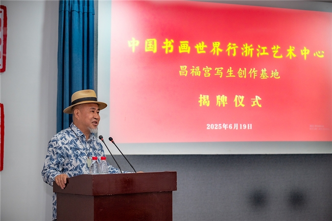 中国书画世界行浙江艺术中心主席叶岚在仪式上表示:“昌福宫写生创作基地的成立,是我们推动书画艺术发展的重要举措。这里的山水人文,能让艺术家们汲取养分,激发创作灵感。我们期望以此为平台,汇聚更多书画人才,创作出更多反映时代风貌、展现浙江韵味的优秀作品,推动书画艺术在新时代的传承与创新。”