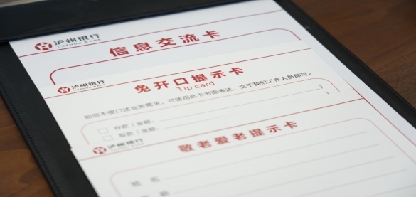 根据老年人特点,泸州银行推出《适老化服务手册》,明确老年人业务保障措施、办理流程及服务话术,提升适老服务质效。同时,在服务大厅设置老年人服务专岗,佩戴“适老化服务专员”胸牌,为老年人提供陪伴式专属服务。此外,为更好与老年人沟通,泸州银行创新推出“服务三张卡”,为各网点统一配置信息交流卡、免开口提示卡及爱老敬老提示卡,保障老年人业务的正常办理,有效提升老年人在金融场景中的满意度。