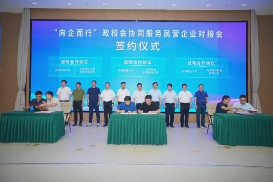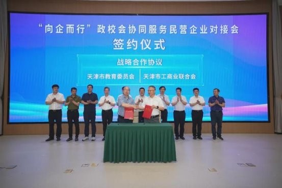 会上,市教委与市工商联签订战略合作协议,天津城建大学、天津轻工职业技术学院等6家本科高校、高职院校代表分别与天津华绘科技有限公司、天津鸿远电气股份有限公司等6家民营企业代表签约,标志着天津政校会协同服务民营企业机制迈入新阶段。市教委发布“向企而行”服务企业能力提升计划,提出将通过资源整合、需求对接、成果转化等举措,助力民营企业突破技术攻关与人才瓶颈。