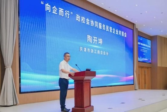 天津市浙江商会会长陶开坤代表在津商会发言。他表示,民营经济是创新与就业的生力军,但面临核心技术、人才短缺等挑战。浙江商会将充分发挥桥梁作用,推动四项重点工作:建立“企业需求库”与“高校成果库”双库联动平台;组织生物医药、人工智能等领域精准对接;探索设立研发转化专项基金;构建人才联合培养与引进机制。商会将引领在津浙商深度融入天津科教资源,助力新质生产力培育。