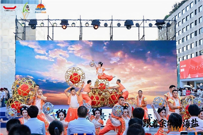活动以“一粒海盐”的诗意想象破题,通过“文旅资源推介+优惠政策发布+融合式表演”的组合形式,立体展现海盐的文化肌理。当滚灯在舞台上交织成“流动的太阳”,非遗绝技瞬间点燃现场氛围;《一粒海盐》主题曲首发演唱,用动人的旋律传递出海盐的味道与情感;《美丽海盐》与《千年等一回》的创意串烧,巧妙融合西湖与海盐元素,点燃全场热情。