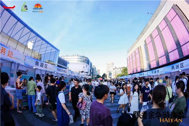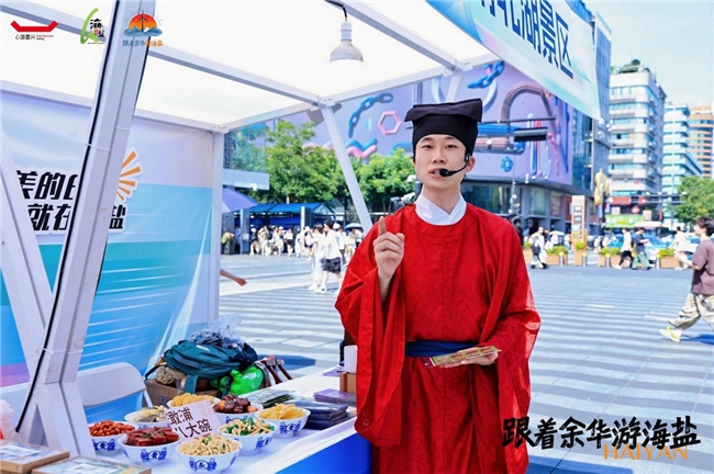 18个精心布置的摊位汇聚了嘉兴五县两区及海盐有关部门、海盐乡镇(街道)与知名市场主体(南北湖景区、绮园景区、嘉兴开元森泊度假乐园、阿拉的海水上冒险乐园、胜利饭店等)的特色好物。游客们在此逛、吃、赏、玩,品味非遗文化、文创产品与地道美食,零距离感受海盐魅力。