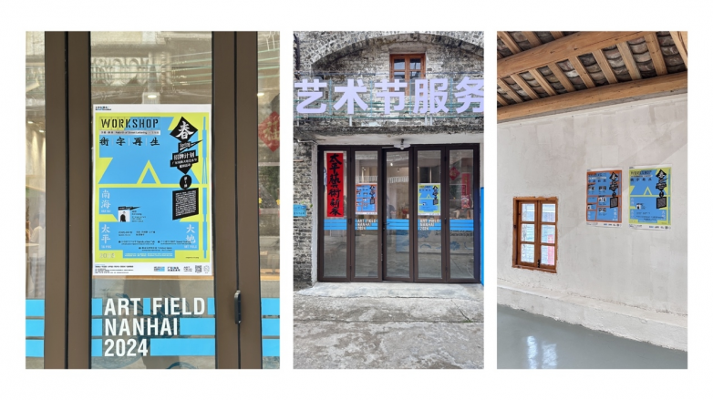 他首先介绍了在广东南海大地艺术节的创作,从文心饼店的复古招牌到「太平」字样的街头主视觉,每一件作品都展现出他对街景、手工艺和人情味的融会贯通。