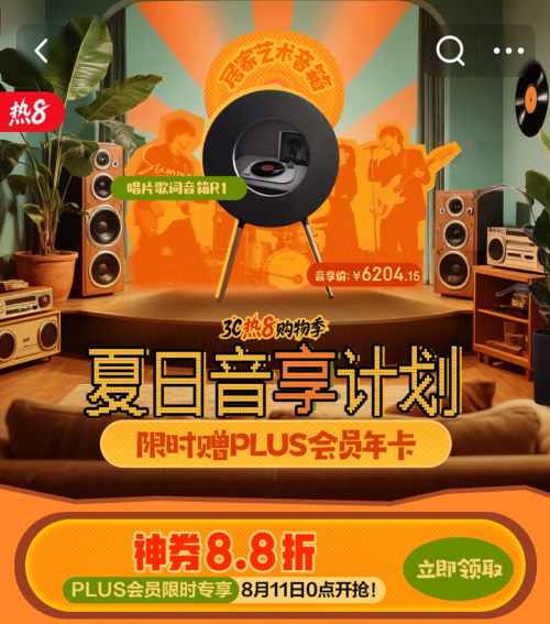 为了让更多消费者享受音乐的魅力,8月11日至12日,京东同步推出夏日音享计划线上活动专场,多款爆品音箱迎来限时直降优惠。在京东下单可领国家补贴立减15%,PLUS会员还能享专属88折优惠,非会员用户购买指定音箱产品即赠PLUS年卡,性价比超高。消费者只需打开京东APP搜索“我的本命bgm”即可直达活动页面,入手心仪好物。值得一提的是,活动期间参与“尖货抽签”的幸运用户将有机会0元购得ANMTU壁画音响、悬浮歌词音箱等潮流单品,奖励结果将于8月12日晚8点揭晓,心动的朋友不要错过。