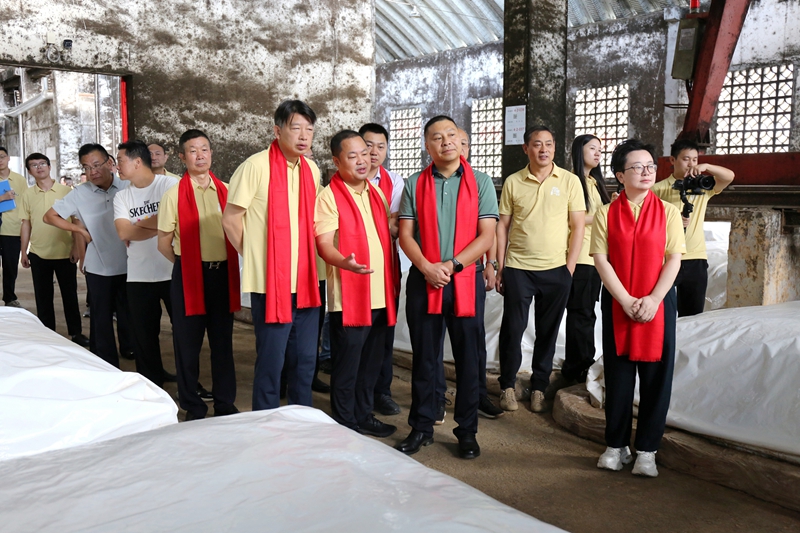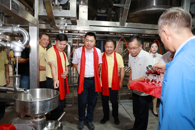 随着工序运行,在车间二楼的馏酒区,融合了清、酱、浓三香的风味升腾而起,弥漫在车间上空,让人未饮先醉。与会领导和嘉宾们近距离观摩酿酒师傅馏酒取酒,共同品鉴秋酿馫香头酒。大家举起酒杯,细细品味,充分感受“一品三香”的酒体特色,脸上流露出惊喜、赞叹与回味的神情,此刻馫香美酒成为连接匠人与消费者的美好桥梁。
