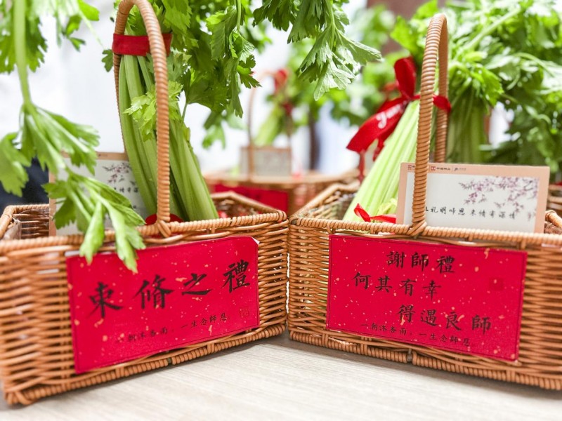 活动当天,中海工作人员一早便携礼品穿梭于各个园区,逐一上门为教师业主家庭送上节日祝福。准教师业主也同步收到由置业顾问专程送达的“束脩之礼”。亲手送上的礼物,传递出比短信问候更深的温度;面对面的文化讲解,也让更多业主理解节日背后的传统内涵。这一举措不仅体现了企业对教师的崇高敬意,更在社区内有效营造了崇文重教、邻里明礼的良好氛围。