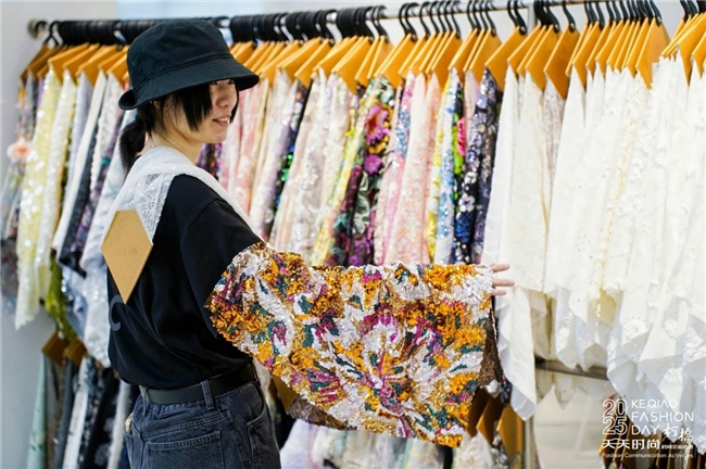 “平绣、珠绣、刺绣......我们不仅展示本公司的产品,也为柯桥友商的优秀产品提供展示空间。”尧晟纺织品的展厅内汇聚了光彩夺目的绣品,这些面料来自于不同的柯桥面料企业,集中展示了柯桥绣品的时尚品味与精美工艺。MENG HUITING品牌创始人孟慧婷对展厅内的产品爱不释手,除数十款调样外,还采购了不少米样。她表示,企业负责人认真倾听设计师需求,同意根据秀款风格进一步迭代绣品,为双方创造了更多更持久的合作机遇。