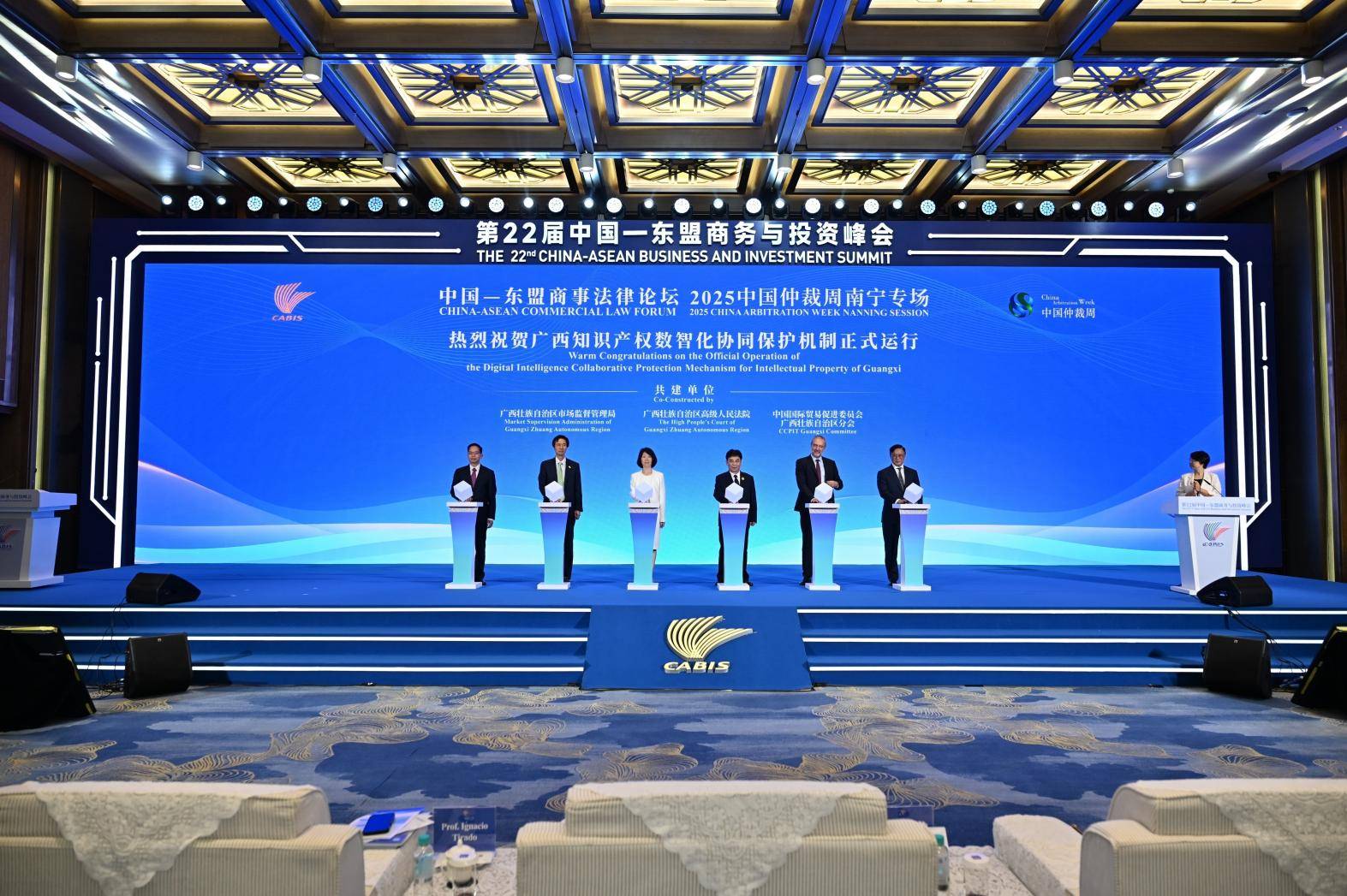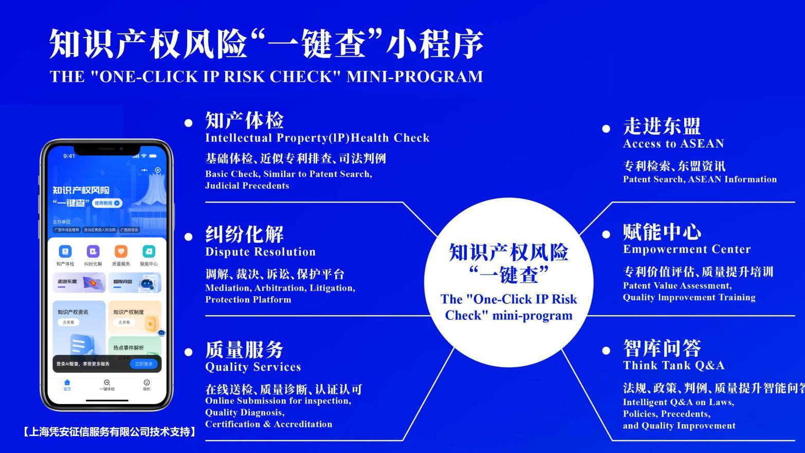 在9月18日峰会平行论坛中国-东盟商事法律论坛上广西知识产权数智化协同保护机制盛大发布。凭安征信为其线上服务知识产权风险“一键查”小程序提供技术支持,助力广西壮族自治区市场监督管理局、广西壮族自治区高级人民法院和中国国际贸易促进委员会广西壮族自治区分会三方围绕中国—东盟合作共建知识产权数智化协同保护机制。
