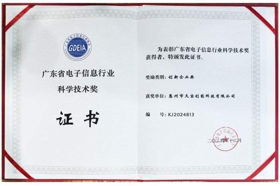 近日,2024 年度广东省电子信息行业科学技术奖获奖名单正式公布,天宝电子旗下子公司惠州市天宝创能科技有限公司“以下简称天宝”凭借电源技术领域的卓越创新实力与亮眼市场成果,成功斩获 “创新企业奖”,充分彰显天宝在电源行业的领先地位。