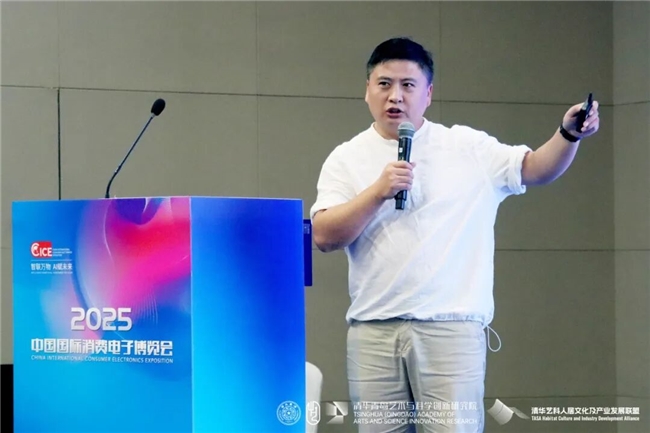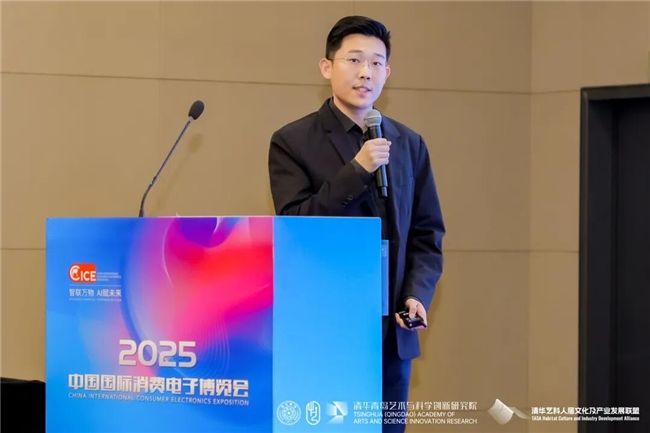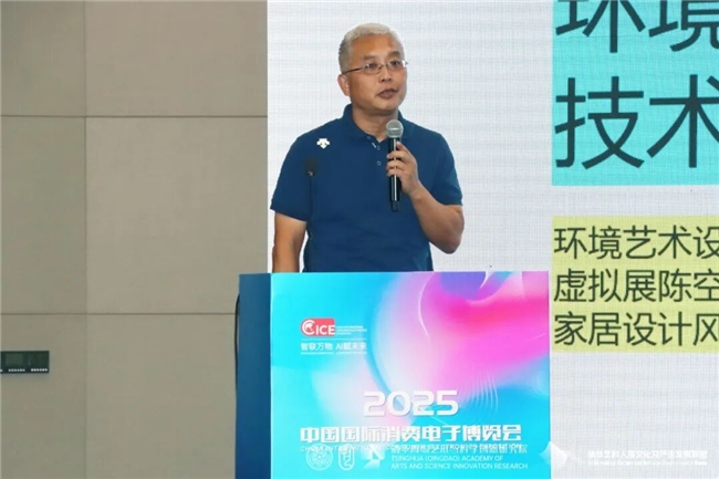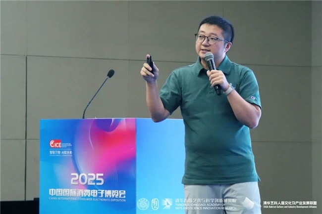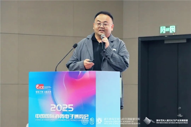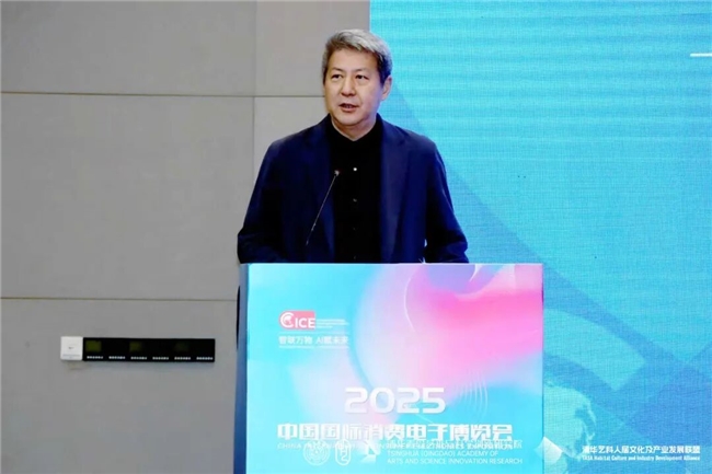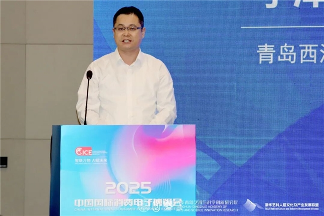 汪建松副院长在致辞中热情欢迎各位嘉宾及观众的到来,同时感谢中国建设文化艺术协会、中国国际消费电子博览会组委会、青岛西海岸新区商务局对本次研讨会的大力支持。他指出,本届研讨会是清华青岛艺科院深入参与国家消费电子产业升级、推动艺术与科学融合创新的一次重要实践,清华青岛艺科院作为清华大学与青岛市共同打造的艺科融合平台,正积极汇聚各方学术资源与产业力量,融汇艺术感性与科学理性,全力构建“有温度、可感知、向未来”的人文新生态。