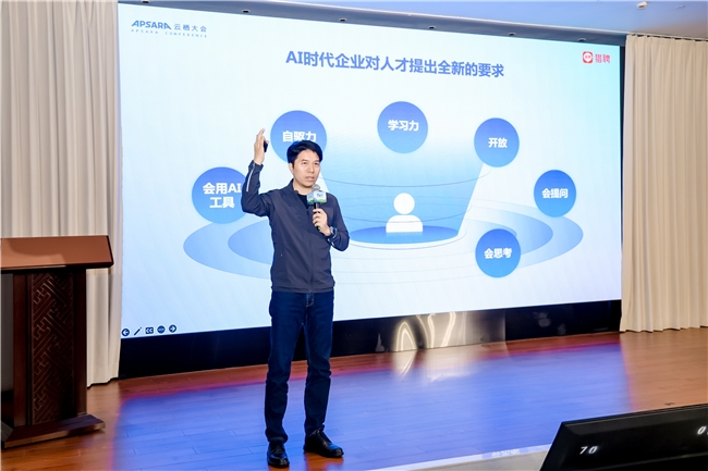 9月24日,在杭州举办的2025云栖大会上,同道猎聘集团董事会主席兼首席执行官戴科彬受邀出席“AI时代的CEO思享汇”分论坛,与二十余位来自全国各高科技公司的创始人及首席执行官共聚一堂。戴科彬围绕“AI时代下中国劳动力市场的深刻变革”发表主题演讲,分享了关于组织形态演变、人才标准重构以及AI对就业生态影响的前沿洞察,其精彩观点引发了现场热烈共鸣与深入讨论。