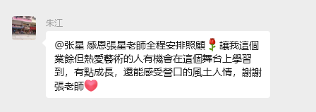 多次参与香港文化艺术交流中心活动的王海燕幸福的表示:“我因音乐与中心结缘,这次跟着团队走进营口,既感受到香港团队互帮互助的温暖氛围,也被营口艺术家们的豪爽热情所感染。子媛老师、陈瑜老师搭建的这个交流平台太有意义了,还有指挥和乐队老师展现出的工匠精神,都让我在提升声乐技巧的同时,更深刻地理解了‘文化交融’的意义,特别期待下次还能参与这样的活动。”