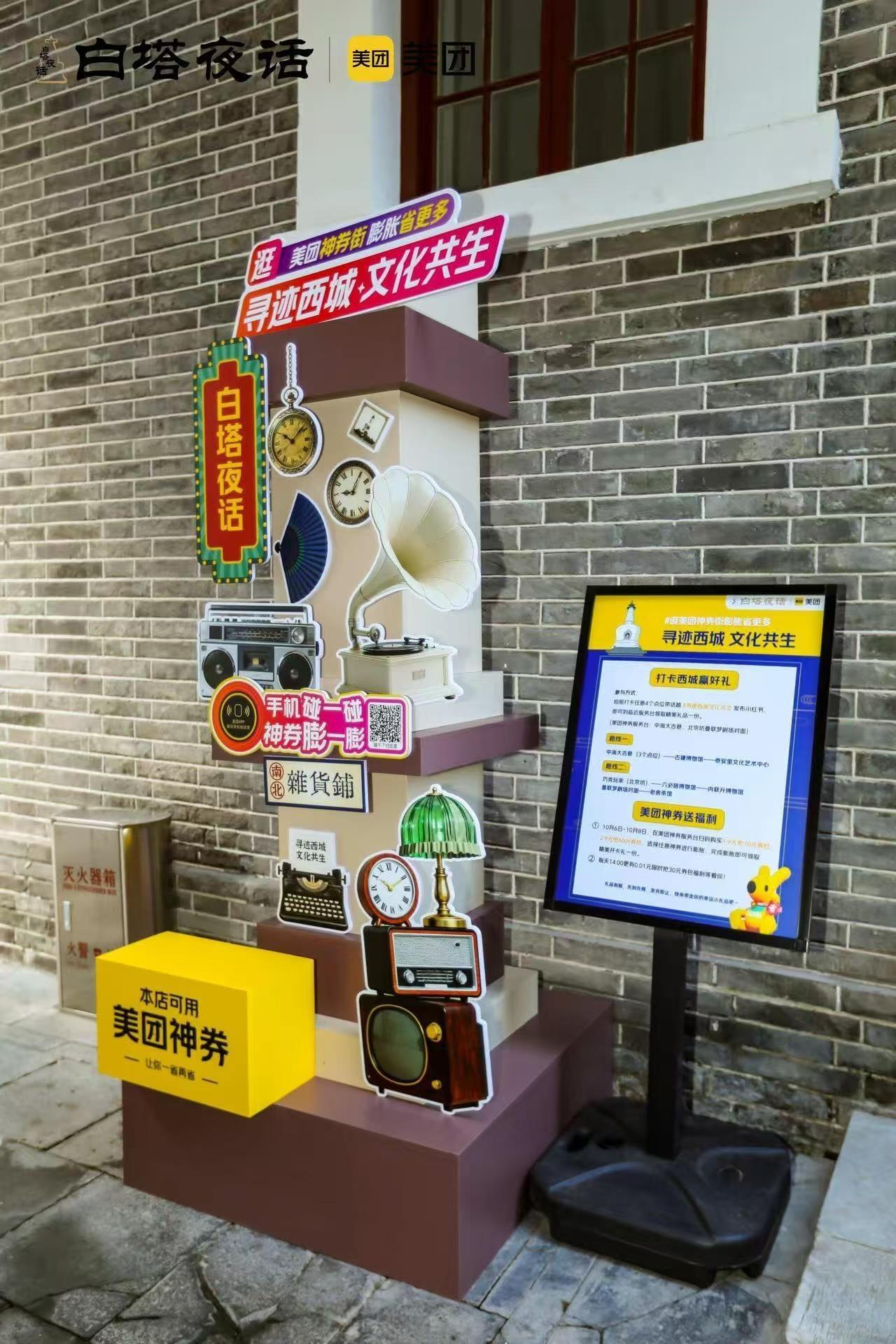 任选一条路线,沿路寻找“白塔夜话x美团”打卡装置,集齐该路线任意4个点位打卡拍照,就可以领取精美礼品一份。