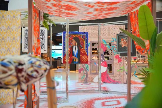 作为本次活动的亮点,“绚烂之纹·艾德莱斯艺术展”将于9月29日至10月28日在2号中庭隆重呈现。展览精心设置了四大主题板块:非遗精品展通过实物织布机与手工织造作品,再现西域丝绸之路的千年技艺;当代艺术展特邀新疆艺术家Adilayla,以现代绘画语言解构传统纹样;民族歌舞展通过艾德莱斯主题大秀、魔毯快闪等演出,打造沉浸式文化体验;文创市集展则汇集新锐设计师的跨界作品,将文化符号转化为可消费的文创商品。配合“超级·小尕子”的烤全羊品鉴盛宴,形成完整的“观、赏、品、购”文化消费闭环。