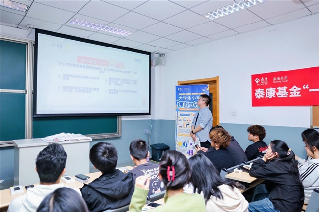 活动中,泰康基金的投教讲师还深入浅出地向学生们介绍了公募基金的运作机制、常见金融产品的风险等级、如何理性看待投资风险等基础金融知识,并向大学生介绍了我国资产管理行业的大体情况,为在校大学生开启了金融世界的大门。