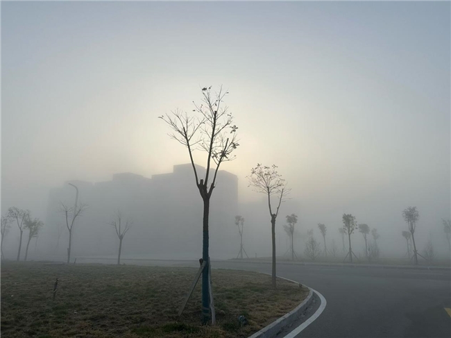 清晨的窗外,世界像被雾轻轻吞了大半,楼宇的轮廓在雾里飘着,倒像悬在半空的楼阁。楼下的老杨树只剩淡淡的灰影,凑近了才见叶片上缀着的水珠,圆滚滚的,迟迟不肯坠落,倒像是雾憋了整夜,悄悄凝在叶尖的泪。往日里沟壑分明的黄土峁,此刻全没了脾气,成了宣纸上没干的墨痕,山与沟的边界漫成一片柔白,连风都放慢了脚步。