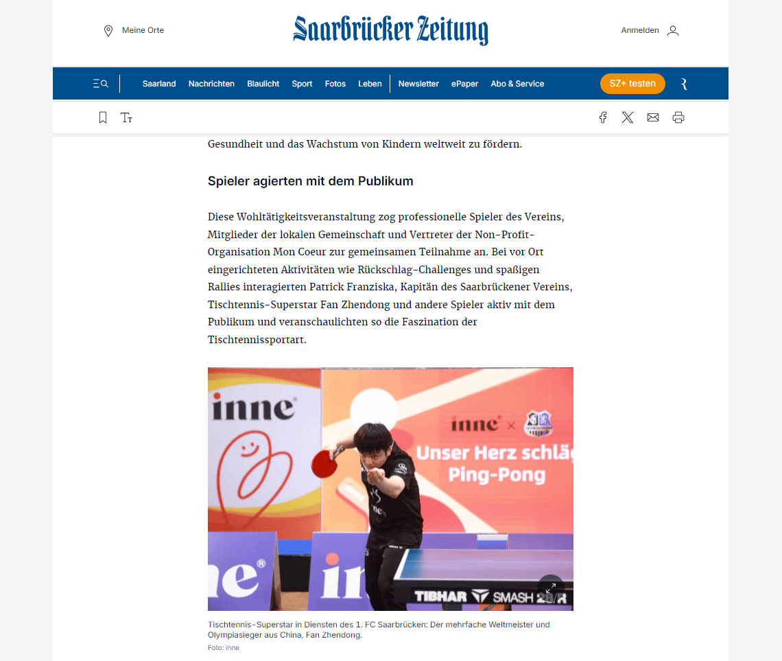 《萨尔布吕肯报》报道inne因你 “Ping Pong for Love”公益活动