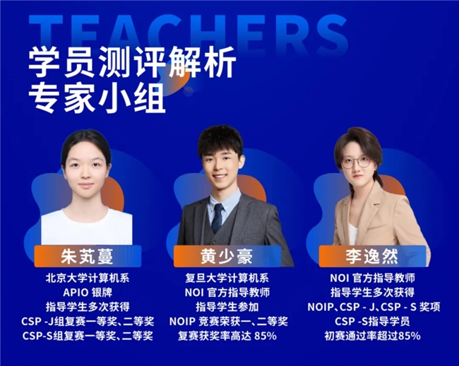 •李逸然(NOI官方指导教师,CSP-S学员初赛通过率超85%)