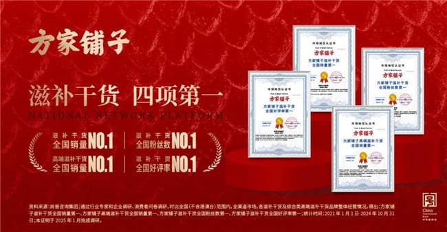 在养生需求井喷的当下,滋补干货市场早已成为品牌竞逐的“红海”,行业一度陷入“价格战”与“信任危机”双十困局。再此背景下,百年老字号方家铺子凭借过硬的产品实力和优质口碑,斩获“滋补干货全国销量第一”“高端滋补干货全国销量第一”“滋补干货全国好评率第一”荣誉,在销量和口碑上遥遥领先,成为行业公认的标杆品牌。这背后,不仅是产品实力的硬核支撑,更源于品牌百年如一的真诚与坚守。
