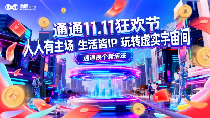2025年双十一期间,一场打破虚实边界的消费狂欢正式登陆通通 App。以“人人有主场 生活皆IP 玩转虚实宇宙间”为主题的通通11·11狂欢节,将元宇宙社交、电商消费、数字创作深度融合,C 端用户登录通通即可实现创作、社交、消费多重权益;活动另以技术补贴等政策赋能 B 端商户实现低门槛商业经营,在元宇宙浪潮席卷消费市场的当下,打造出兼具体验感与价值感的数字盛宴。