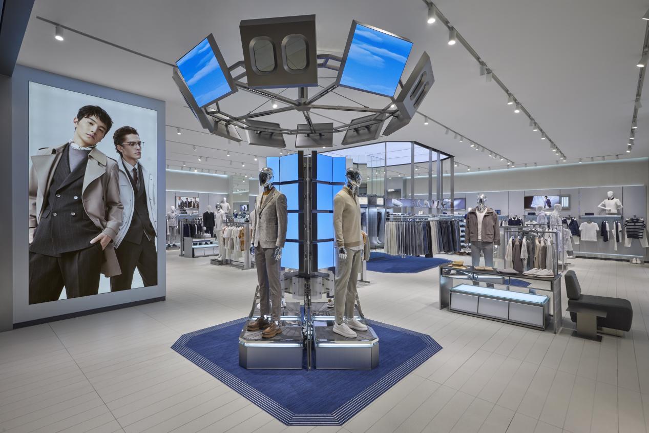 利郎马来西亚第二家门店坐落于吉隆坡PAVILION BUKIT JALIL购物中心二楼,占地约4350平方英尺。门店以“未来通勤转换站”为设计概念,贯穿“超现实未来商务”的美学理念,将品牌“简约不简单”的哲学融入整体空间叙事。从融合在地文化意象与现代建筑语言的外观,到以动线与光影塑造沉浸体验的内部空间,新店构建出一个兼具前瞻视野与实用功能的零售新场景。
