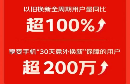 众多消费者在京东11.11选择以旧换新购机,既环保,又能降低换新门槛,以旧换新全周期用户量同比增长超100%。此外,京东11.11还为消费者提供30天意外换新服务,让消费者安心换新手机,享受手机“30天意外换新”保障的用户超200万。