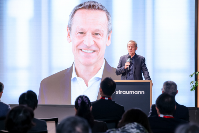 士卓曼集团全球 CEO 纪尧姆·丹尼洛特(Guillaume Daniellot)在致辞中,回顾了集团自1999年进入中国以来,与各方伙伴铸就的信任与共赢纽带。他强调,作为集团全球第三大种植体生产基地,中国产学研中心的意义远超国界。