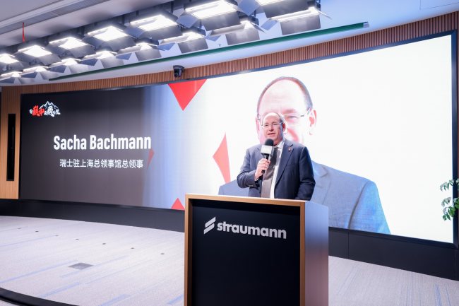 瑞士驻上海总领事邵凯文(Sacha Bachmann)在致辞中表示:“士卓曼应用全球领先的技术工艺制造出服务中国百姓的口腔种植体,不仅是瑞士精工的体现,也是中瑞医药产业合作的一个生动案例。”