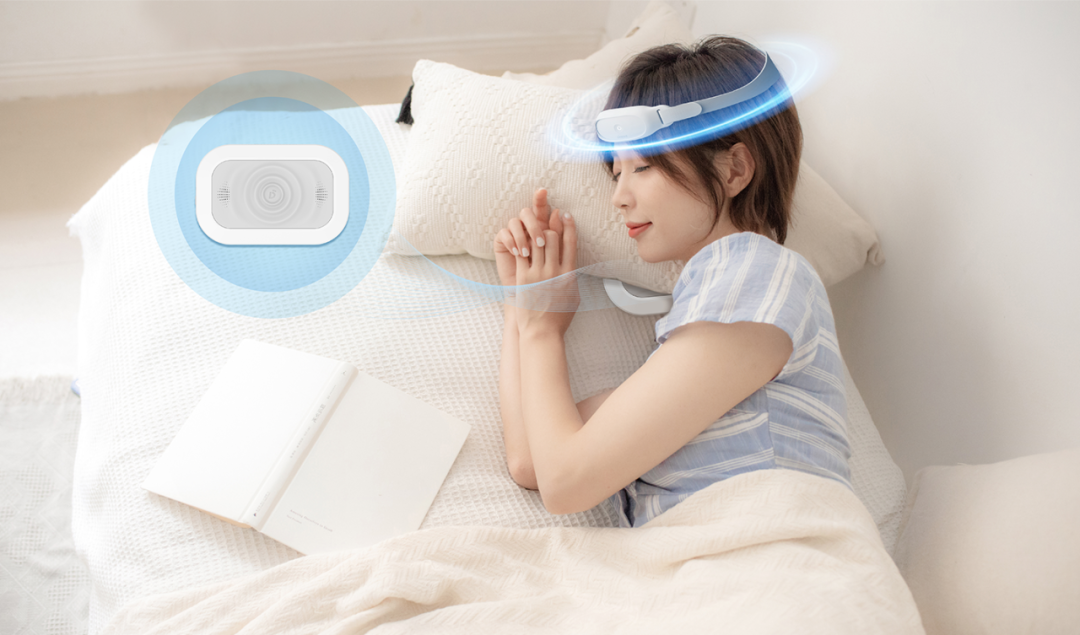 在干预端,系统通过低频脉冲磁场+定制舒缓声景+动态柔光引导三重协同机制,温和调节大脑兴奋水平,促进α波生成,有效缩短入睡潜伏期,帮助用户从“被动躺平”转向“主动入眠”。